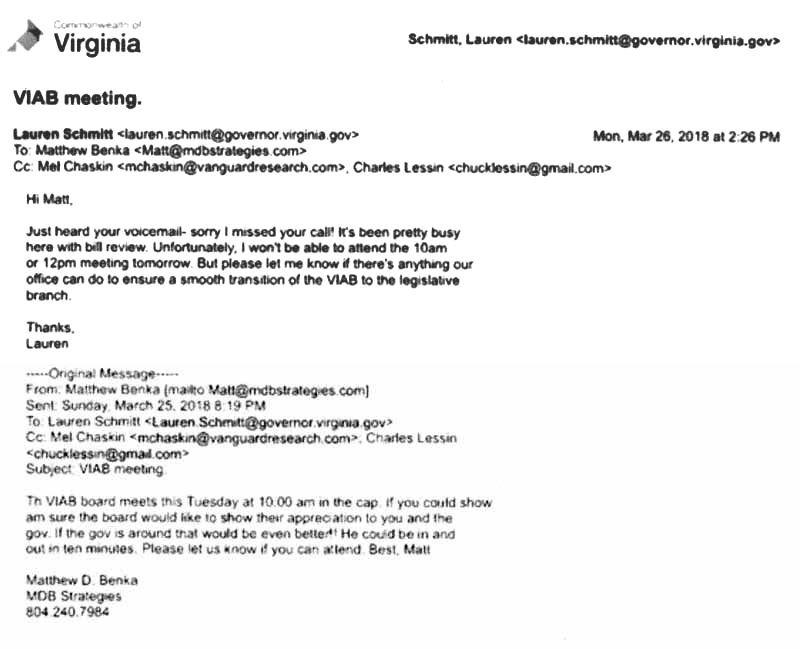Lauren Schmitt, Deputy Legislative Director, declines invitation to visit VIAB.
